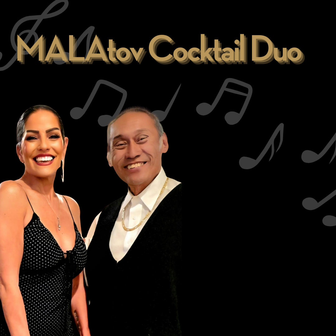 Experience the electrifying vibe of Las Vegas nights with The MALAtov Cocktail Duo, comprised of Miss Mala and Dusty, as they ignite the stage with their dynamic performance. Dusty's masterful guitar skills, complemented by fuego duets with Miss Mala, encompassing Santana to Selena and Sinatra to Sade, mesmerize global crowds.