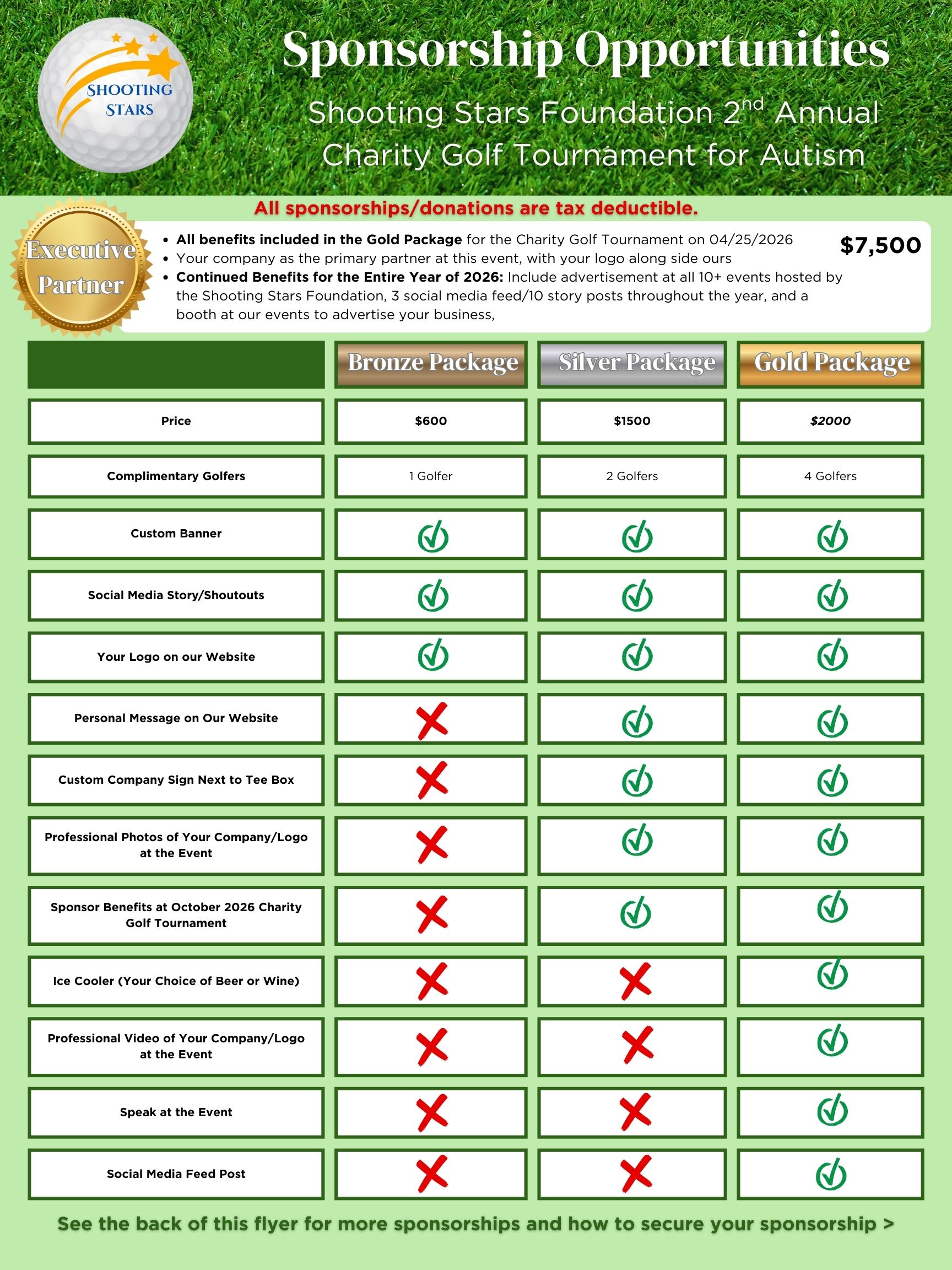 Proceeds from the event directly support Shooting Stars Foundation’ mission to provide resources, advocacy, and services that promote independence, inclusion, and improved quality of life for individuals on the autism spectrum. The tournament features 18 holes of golf, on-course contests, raffles, and opportunities for sponsorship and community engagement.