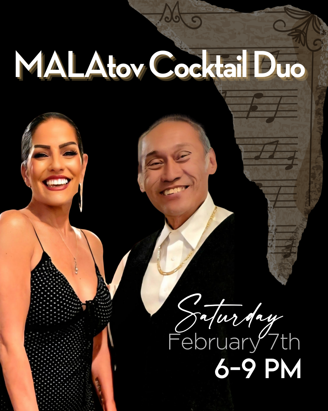 Experience the electrifying vibe of Las Vegas nights with The MALAtov Cocktail Duo, comprised of Miss Mala and Dusty, as they ignite the stage with their dynamic performance. Dusty's masterful guitar skills, complemented by fuego duets with Miss Mala, encompassing Santana to Selena and Sinatra to Sade, mesmerize global crowds.