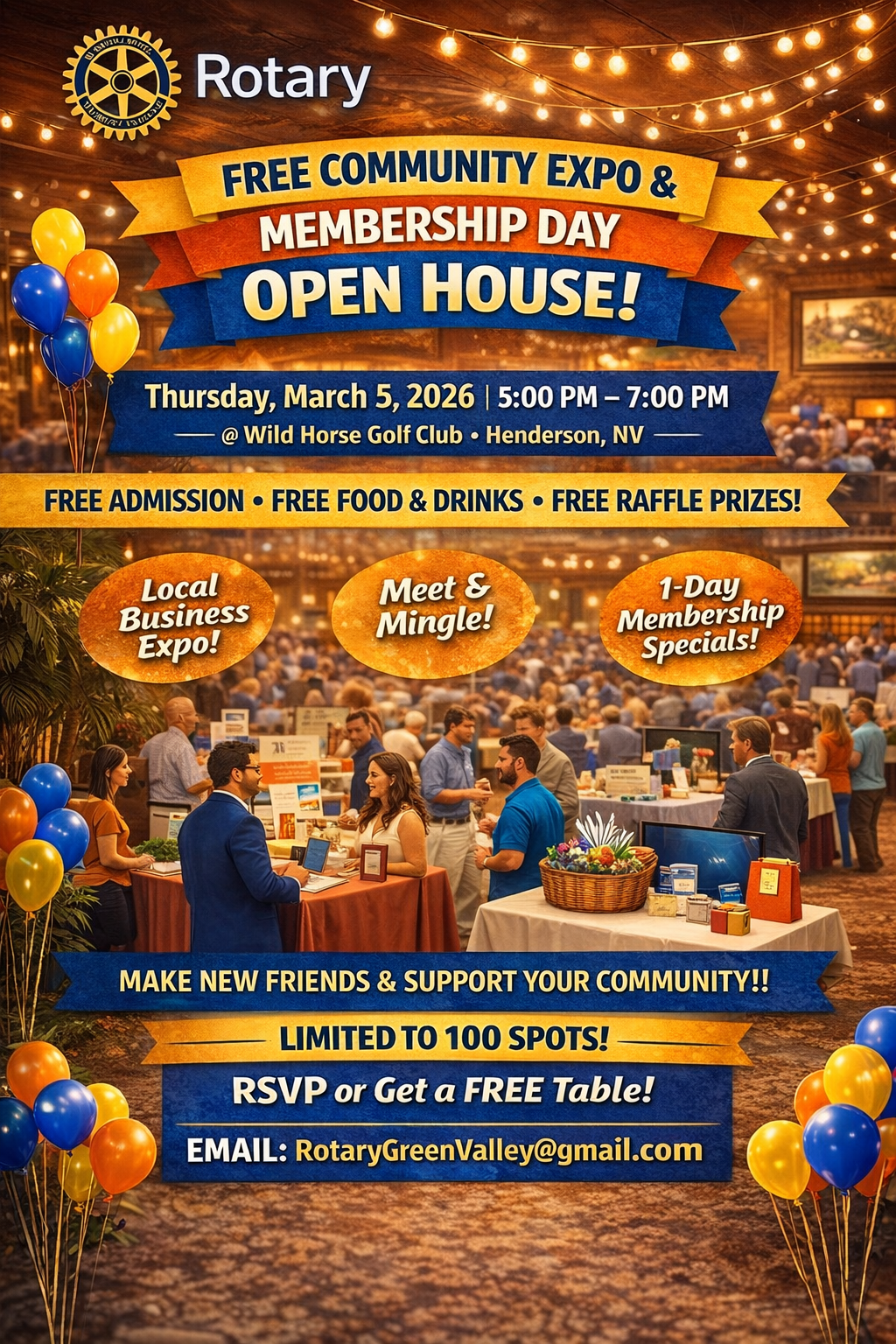 Join us for the Free Community Expo & Membership Day Open House on Thursday, March 5, 2026, from 5:00–7:00 PM at Wild Horse Golf Club in Henderson.