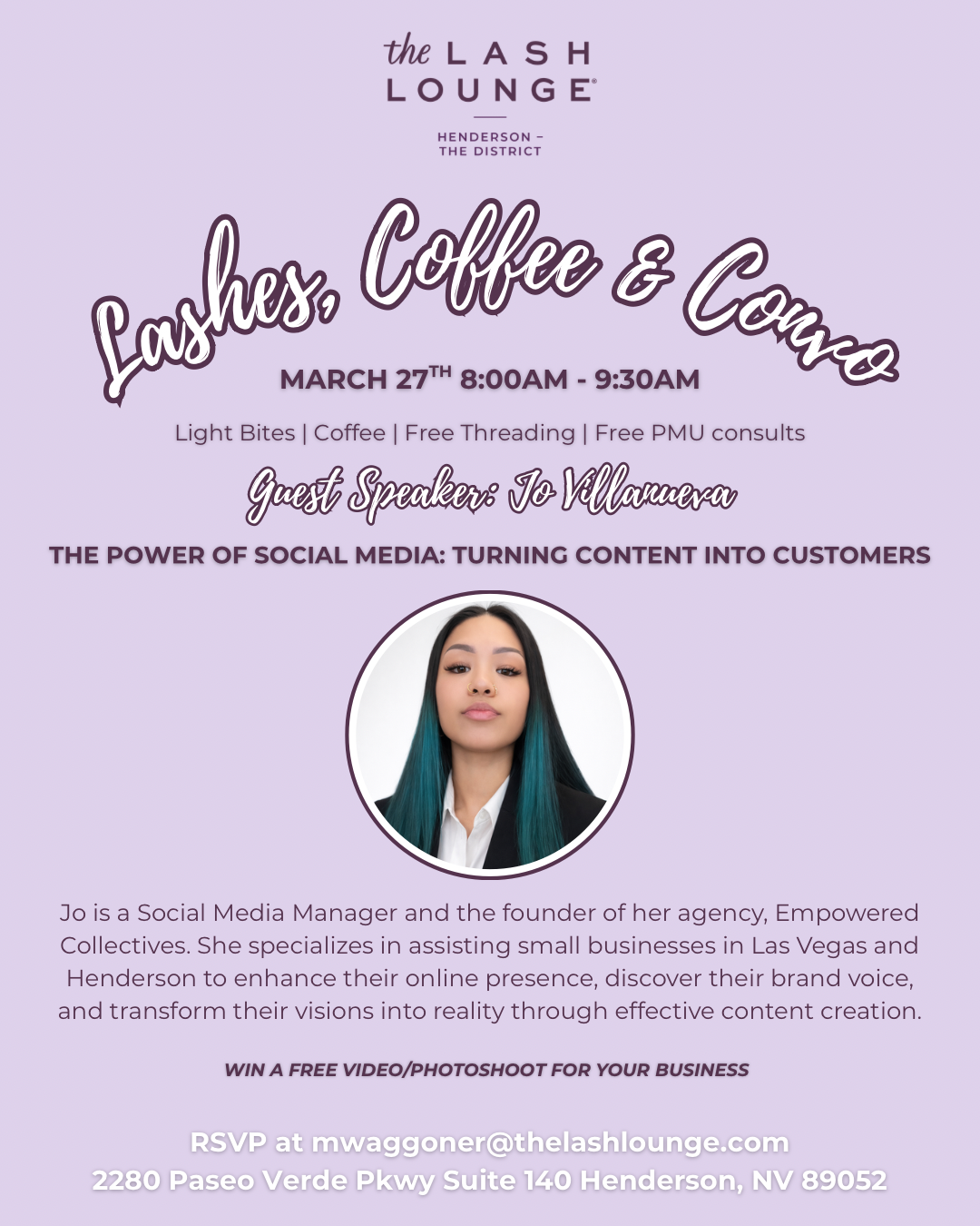 Our monthly morning mixer focusing on all things beauty, wellness and real connections.  This month our guest speaker, Josie Villanueva, content creator and founder of Empowered Collectives will shed light on how to effective use content to translate to your customers. Free brow threading and permanent make up consults.
