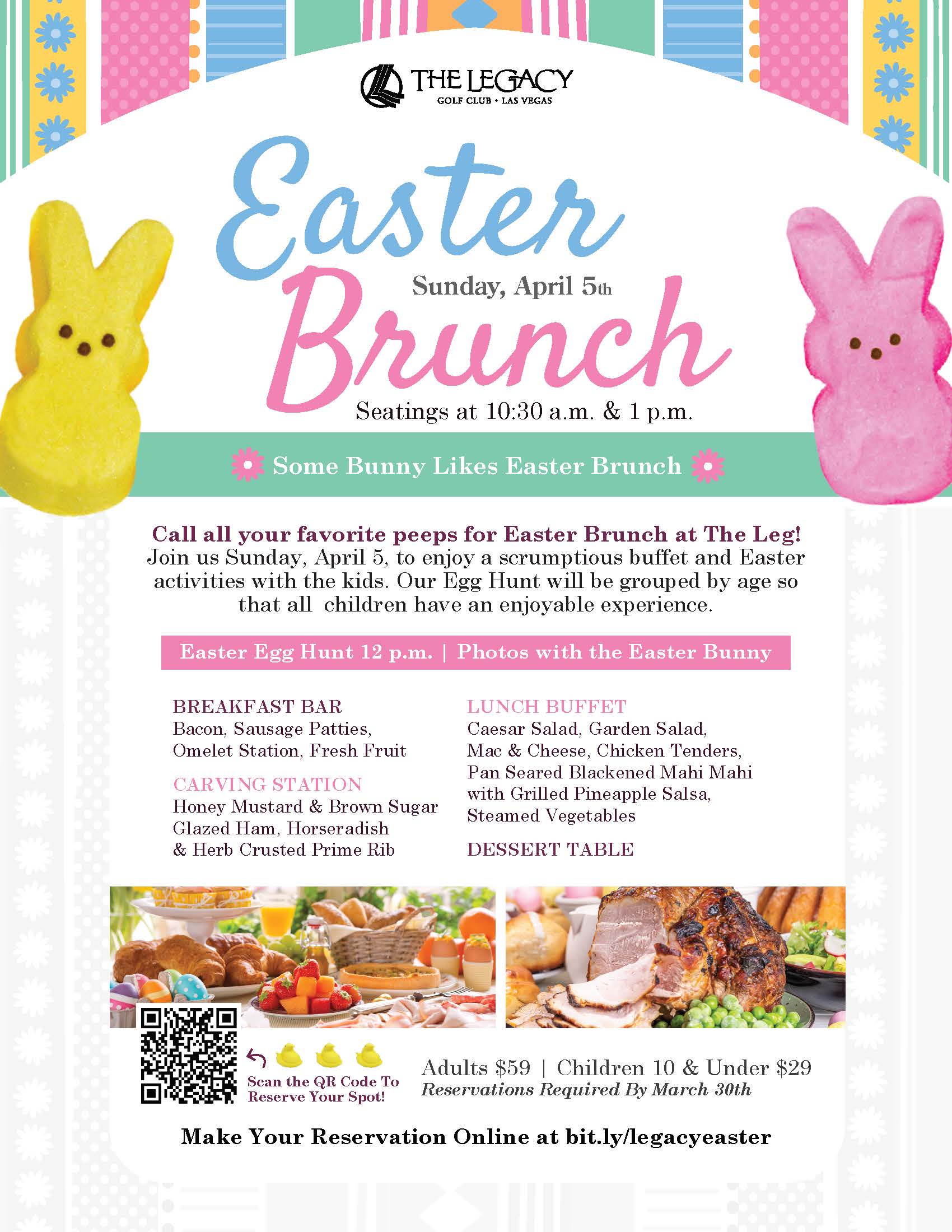Call all your favorite peeps for Easter Brunch at The Leg! Join us Sunday, April 5, to enjoy a scrumptious buffet and Easter activities with the kids. Seatings at 10:30am and 1pm.